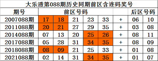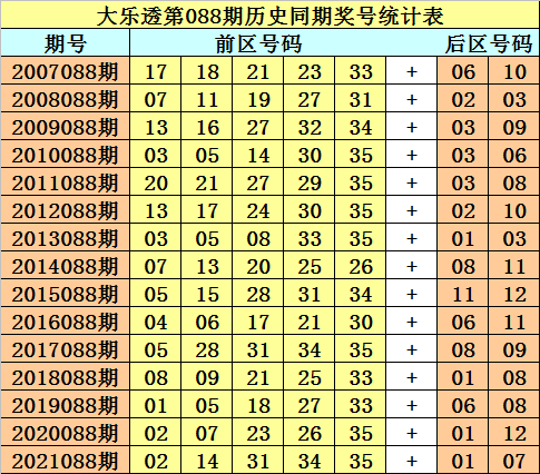 大乐透第2022088期历史同期推荐: