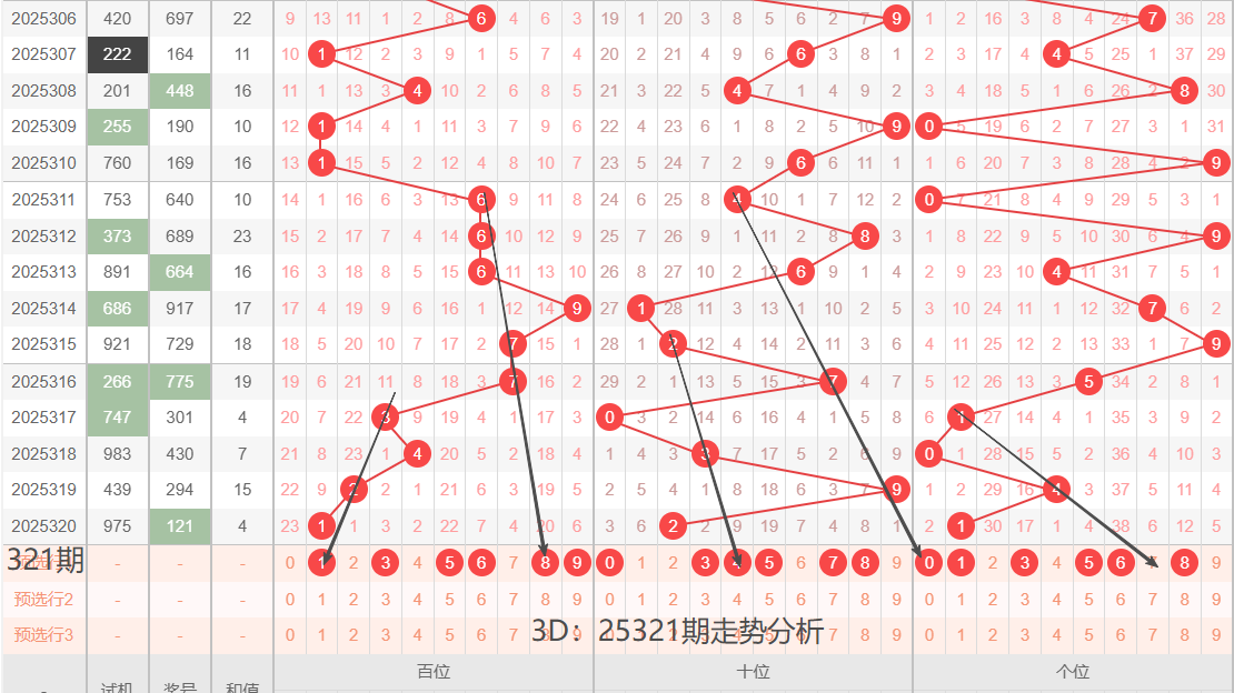 以上是个人对25321期3D的基本分析,以上号码仅供参考,切勿盲目跟投,感谢!