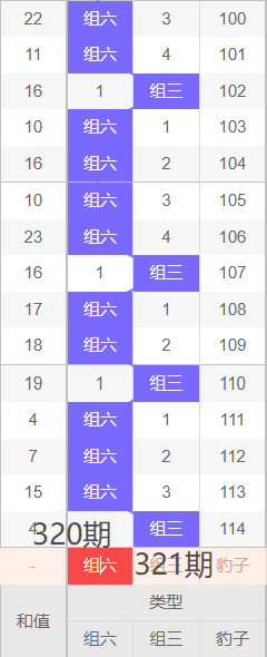 上期形态:组三,近10期的形态分别为:组六,组六,组三,组六,组六,组三,组六,组六,组六,组三,近期组三和组六的形态比较规律性,根据以往形态规律,本期个人认为需要重点关注组六落位,同时也需要防组三形态的开出。