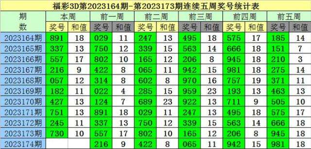 老梁福彩3D第2023174期综合推荐: