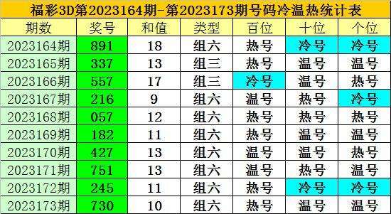 上期回顾:福彩3D第2023173期开奖奖号为:730,奖号类型为:组六,奖号冷温热态为:热号+温号+温号。