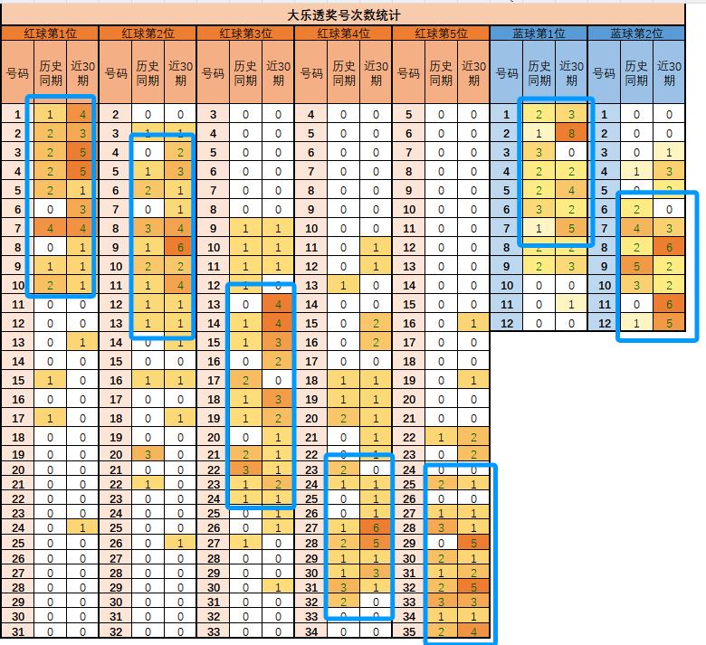 统计历史同期、近30期奖号频率,热门摸底,灵感来源