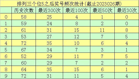 第三位杀号:第三位上期出现奖号5,该位历史上奖号5已开出了619次,最近100次第三位开出5时,下期号码0-9分别落号:号码8、2→15次,3→12次,6、9→11次,4→10次,1→8次,5、7→7次,0→4次。