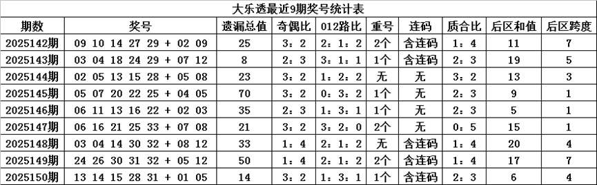 近9期奇偶比例为21:24,奇号出现较少,上期奇偶比为3:2,本期预计偶号表现相对活跃,关注奇偶比2:3。