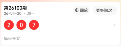 2026100期开奖号码为207,奇偶值为2偶1奇;大小值为2小1大;012路走势为012路;跨度为7跨;和值9点;组六形态。