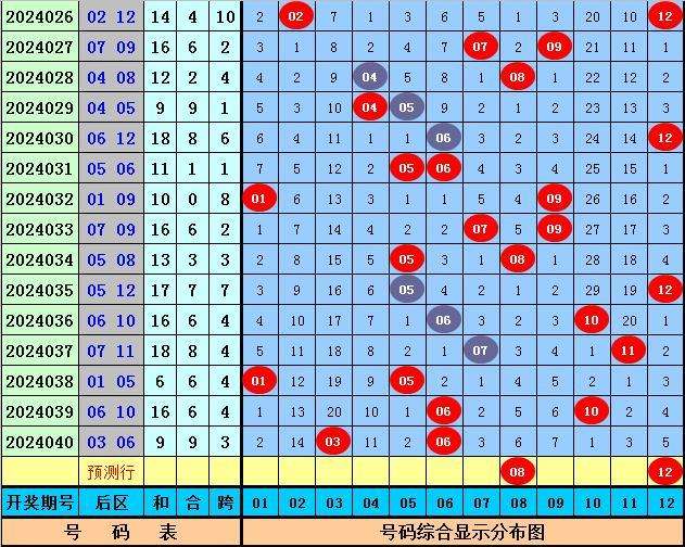第2024041期前区胆码参考:03、12,前区必杀四码:05、08、11、32。
