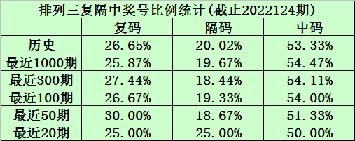 上期回顾:排列三第2022124期奖号为:224。大小比为0:3,奇偶比为0:3,012路比为0:1:2。