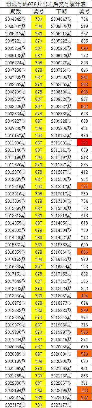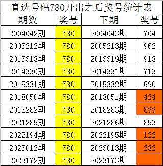 从上表统计可以看出,直选号码780开出之后,其下期奖号: