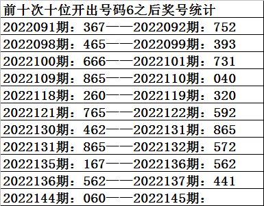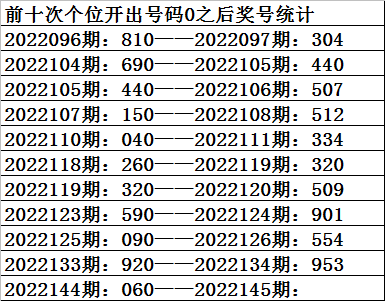 一、上期开奖:福利彩票3D第2022144期奖号为060。奇偶比为0:3,大小比为:1:2,奖号和值为6,奖号跨度为6。