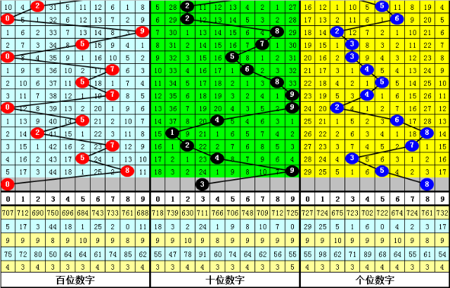 其中,组三出现7次,组六出现13次,单选0-9分别开出: