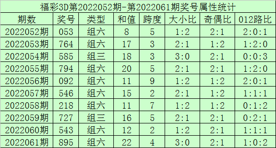 组选奖号奇偶比33:27,大小比24:36,012路比31:18:11。