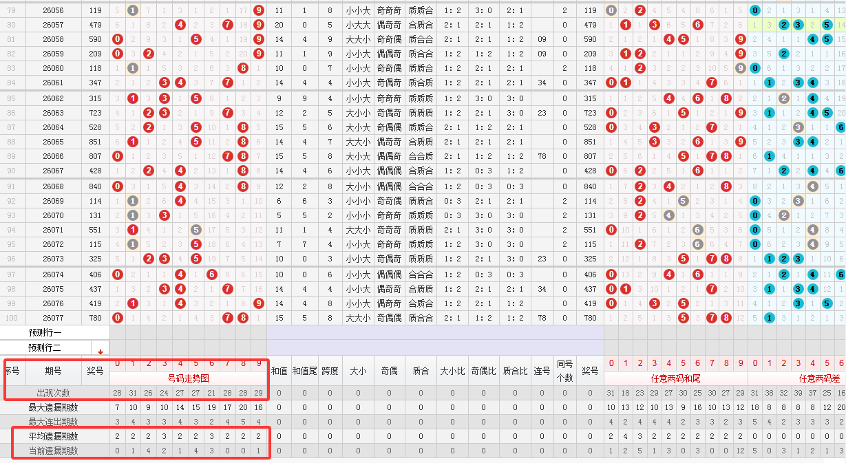 (二)取近100期综合下落概率给号码进行逐一分析