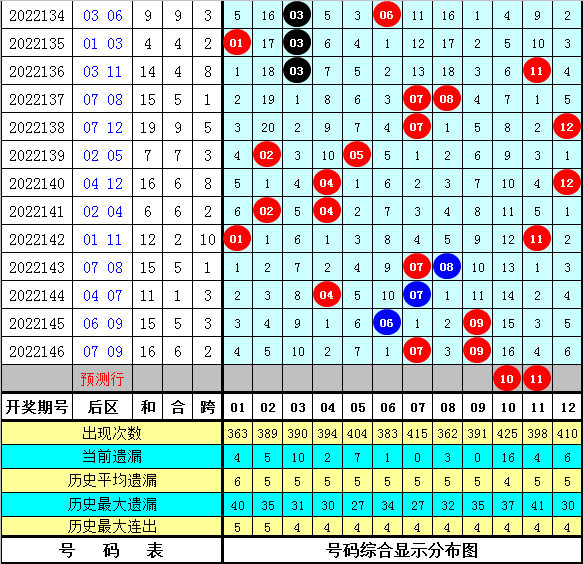 后区号码:上期开出全大,本期预计全大重复出现,参考号码:10 11。