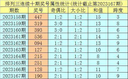 上期回顾:排列三第2023167期奖号:190。类型:组六,奇偶形态:奇奇偶,大小形态:小大小,和值:10,跨度:9。