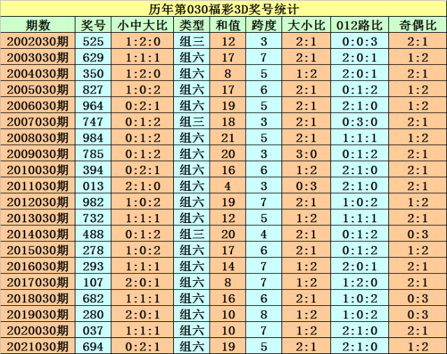030期阿旺福彩3D预测奖号:跨度分析