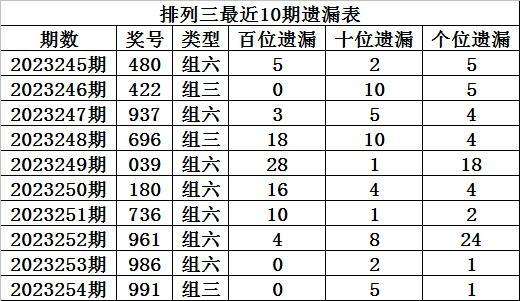 上期回顾:排列三第2023254期奖号:991,组三,直选遗漏总值为6期。