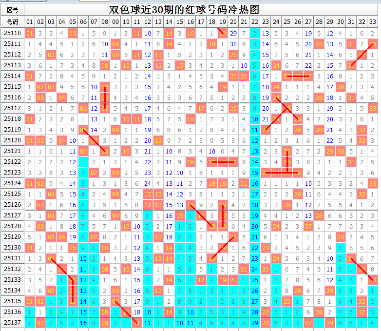 以下是双色球最近7期(25131-25137期)的推荐情况,更多期数的请参考往期文章: