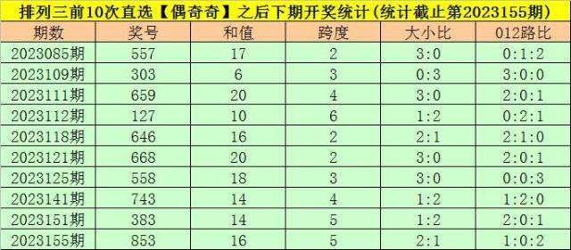 开奖回顾:排列三第2023155期开出奖号:853,类型为组六,和值为16,奇偶比为2:1,大小比为2:1,跨度为5。