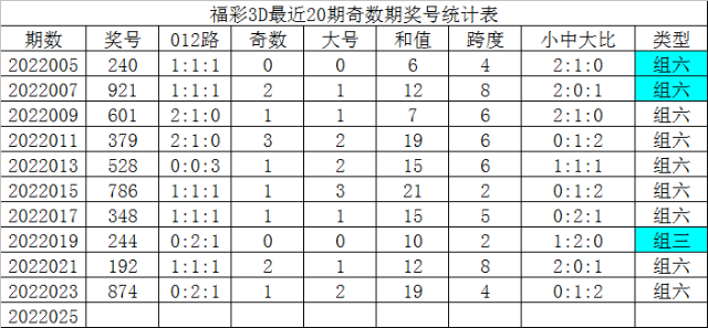 福彩3D最近20期奇数期奖号为: