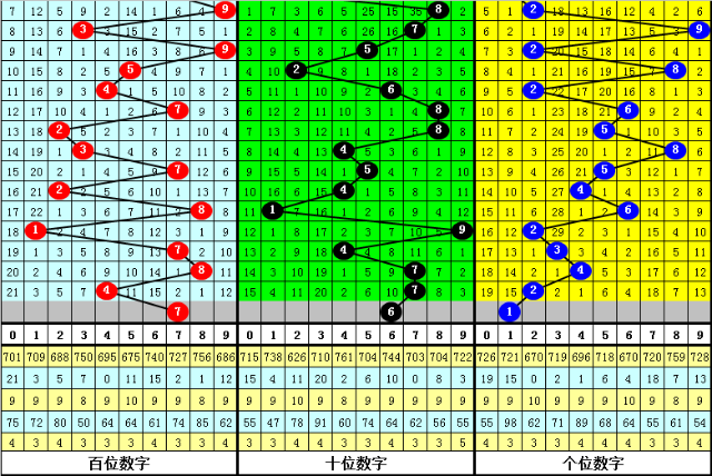 在以上号码中,号码9表现活跃,开出了6次;号码0、1、2表现较冷,开出了1次。号码奇偶比为20:10,奇数开出次数较多,本期关注奇数再出;号码大小比为20:10,小号走势疲软,本期防范小号回补;本期通杀号码:7,胆码建议:1。
