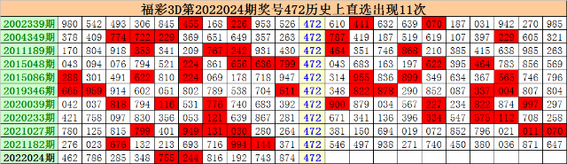 第2022024期奖号:472。