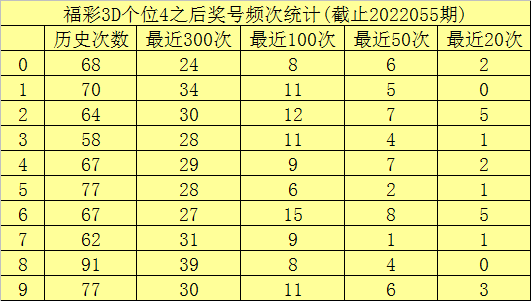 个位奖号4最近三期开出之后,其下期分别落号:2、9、5,号码出现在:高频区域、高频区域、低频区域,本期个位可以排除高频号码,杀5码:12369。