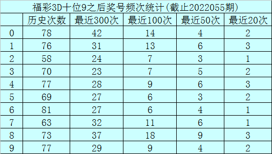 十位杀号:上期十位奖号为9,历史上十位奖号9共出现723期,前100次十位开出奖号9时,其下期0-9奖号频次分别为:奖号8开出18次,0开出14次,1开出13次,7开出11次,4、9开出9次,2、3开出7次,5、6开出6次。