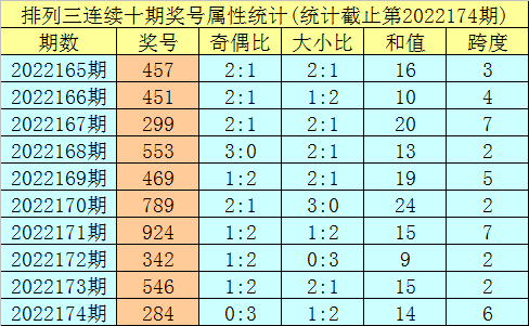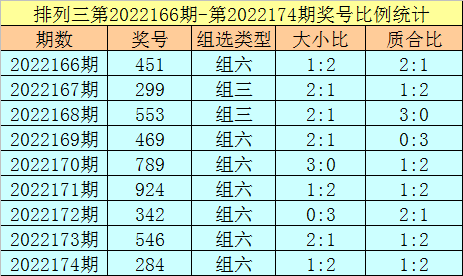 上期回顾:排列三第2022174期奖号:284。类型:组六,奇偶形态:偶偶偶,大小形态:小大小,和值:14,跨度:6。