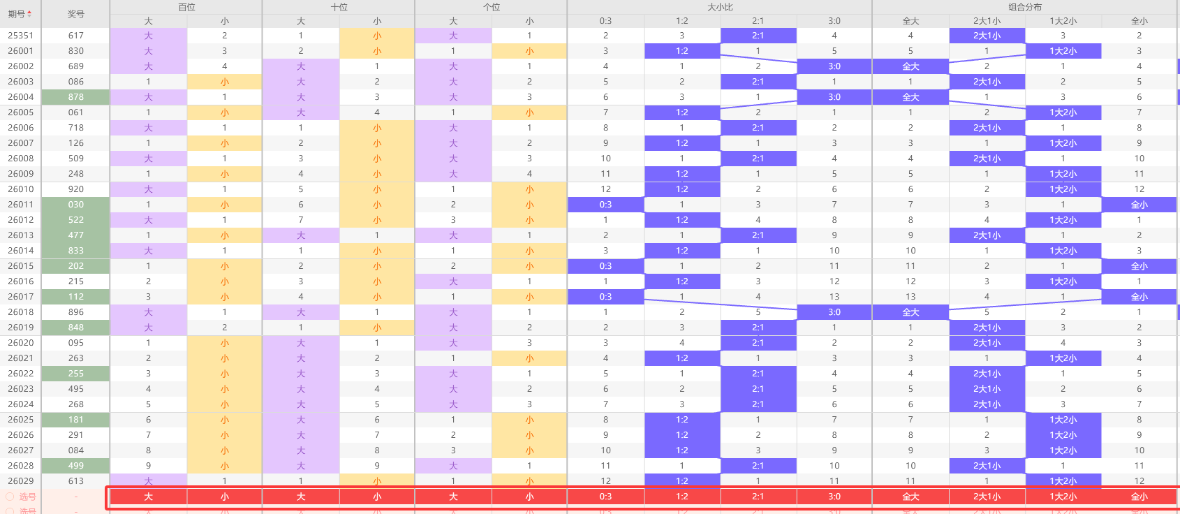 大小比推荐:0:3 / 1:2 / 2:1 / 3:0