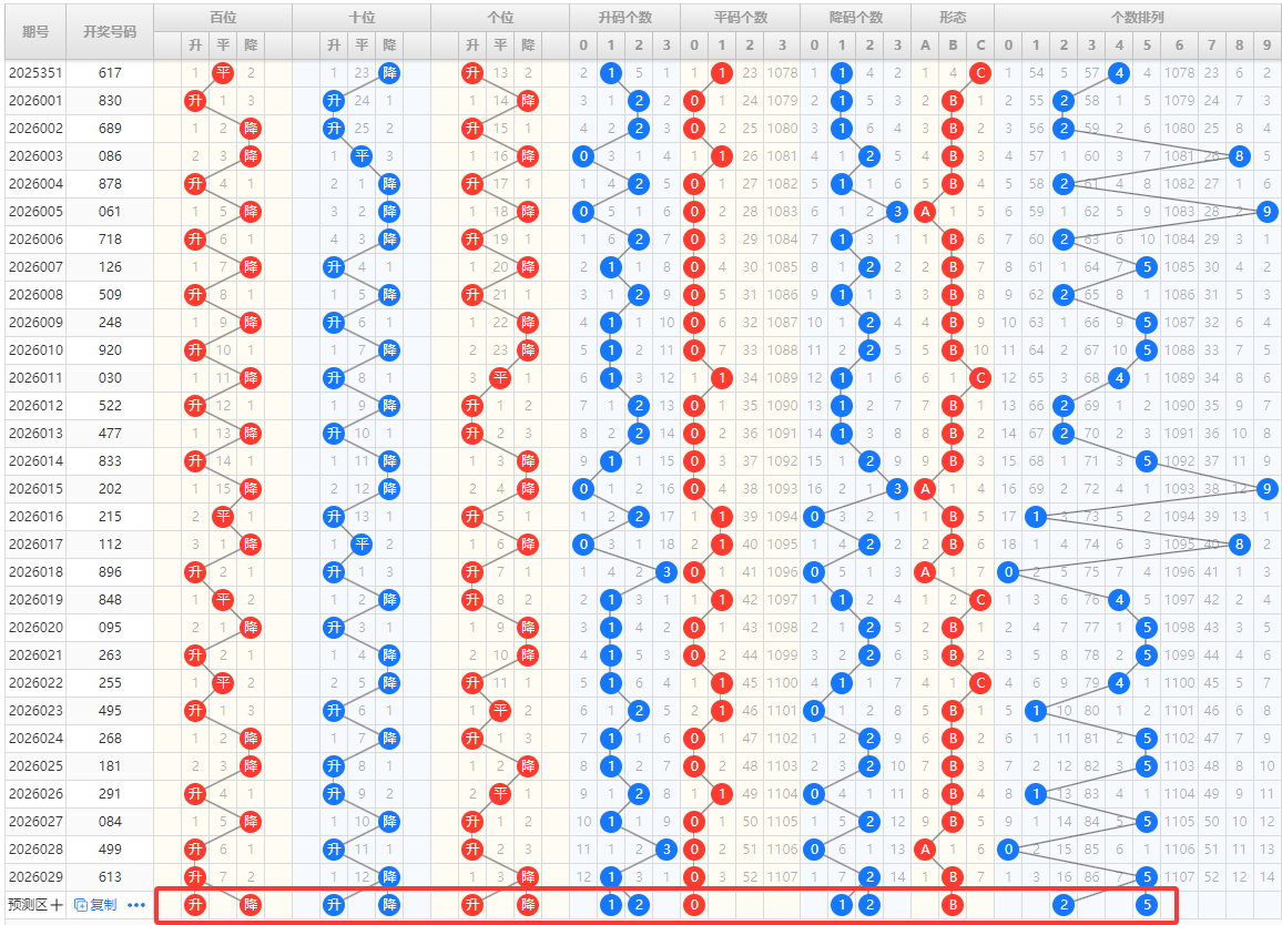 升平降形态举例:A(全升码、全平码、全降码) B(升码、平码、降码有一个不出) C(升码、平码、降码各出一个)