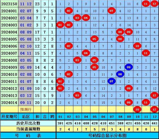 前区冷热分析:上期前区开出2个冷码奖号:16、31,奖号冷热比为2:3,本期参考冷热比1:4,关注冷码11。