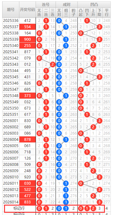排列三连号成对凹凸分析走势图