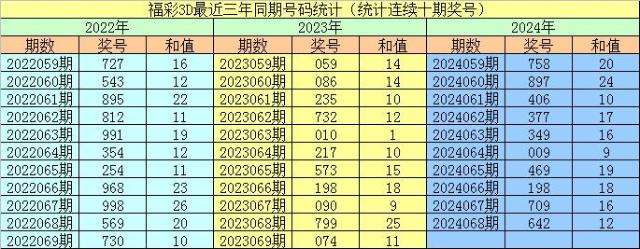 上期回顾:福彩3D第2024068期奖号:642。