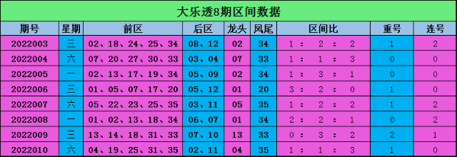 上期区间比为1:1:3,上期3区势头热,1、2区比较温,本期推荐区间比关注2:1:2。