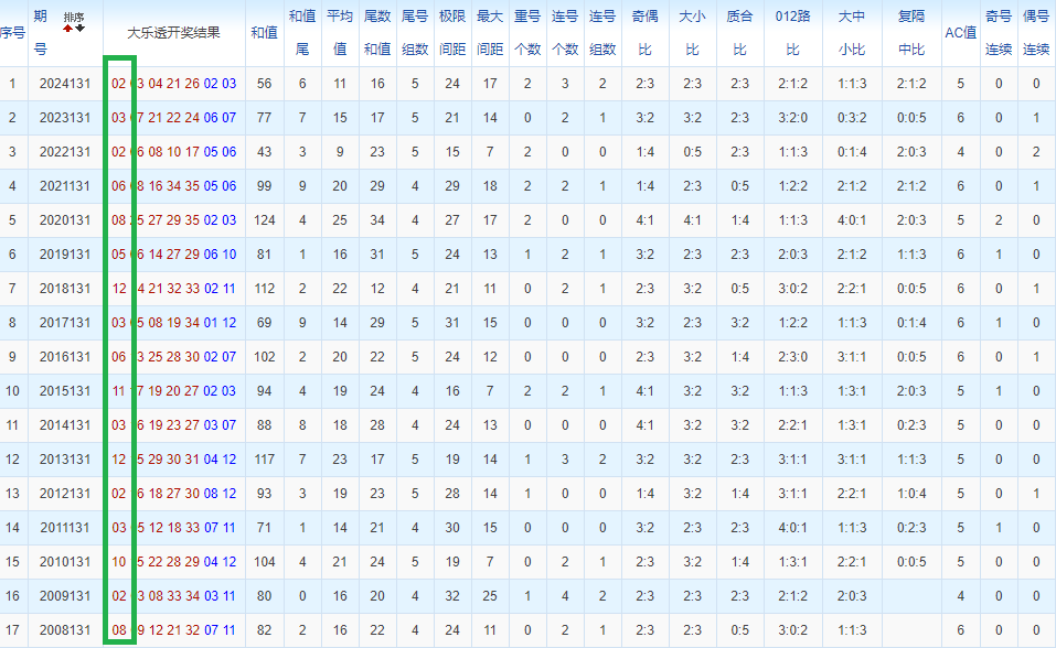 通过观察,我发现往年同期的开奖数据与本期号码之间存在显著关联。具体来说,在前区号码中,从第一位至第五位,通常会有约三个位置上的数字与往年同期相同位置的号码一致;而后区号码中,也有多期开奖结果直接包含了往年同期的数字。因此,我们可以借助往年同期各位置上的号码,作为分析本期开奖情况的重要依据。在此基础上,还可结合往年同期的其他相关条件,进行综合性的号码组合推荐。