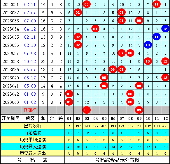 后区分析:上期后区开出奖号01、08,为一奇一偶组合,本期后区预计奇数号码转热,看好出现全奇组合,关注两码03 09。