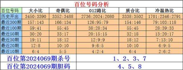 排列三百位第2024069期杀号:1、2、3、7