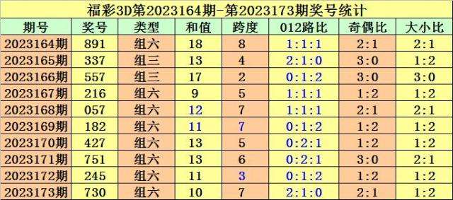 开奖回顾:第2023173期福彩3D奖号为730。