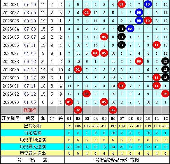 9。在历史同期奖号中,后区号码07出现5次;05 08出现4次;04 12出现3次;02 06 09 10出现2次;01 03 11出现1次。