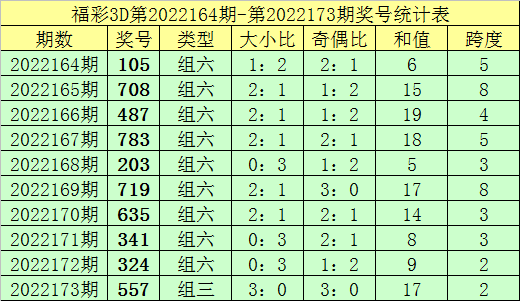 其中大小比3:0,奇偶比3:0,和值17,跨度2。