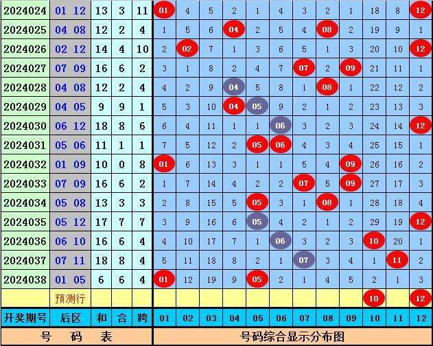 后区分析:上期后区开出号码01和05,最近10期后区奖号奇偶比为12:8,大小比为9:11,本期后区看好号码01、02、05、10、12,后区单挑两码10、12。