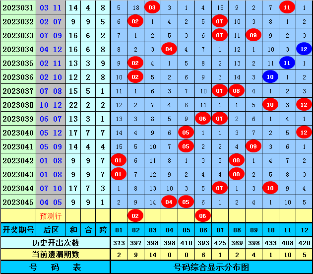 后区分析:上期后区开出全小组合:04+05,最近10期后区奖号大小比为12:8,本期防全小组合再出,参考两码02、06。