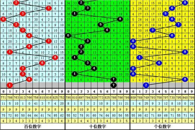 前7期012路比为3:3:1,2路号码相对走冷,目前012路号码遗漏值分别为:1期、0期和4期,本期该位注意1路号码。