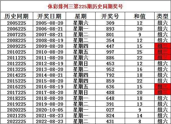2023年8月23日排列三第225期开奖,历史同期分别开出奖号: