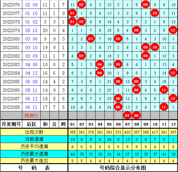 大乐透第2022089期前区号码012路分析