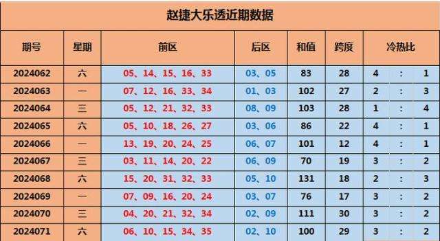 072期赵捷大乐透预测奖号:跨度参考
