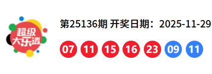 大乐透上期开奖号码(2025136期):07.11.15.16.23+09.11