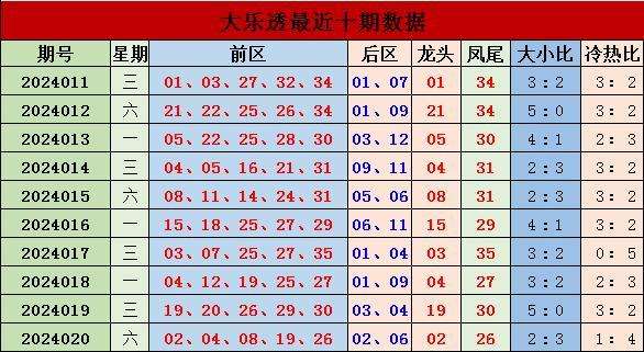 上期回顾,大乐透第2024020开奖,本期奖号:前区02 04 08 19 26;后区02 06,当期前区号码大小比为2:3,三区比3:1:1,奇偶比1:4。前区未开出连号,开出重号19 26。