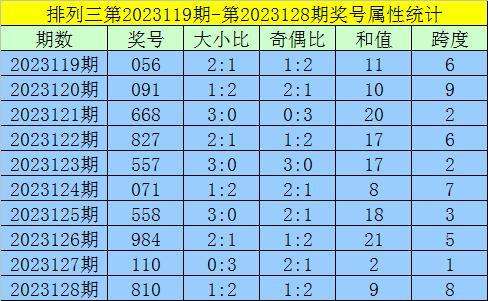 上期回顾:排列三第2023128期出现奖号810。开出组六,奇偶比1:2,012路比1:1:1,大小比1:2,和值9,跨度8。