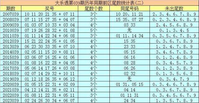 历史上大乐透第039期开出17次奖号,本期第2024039开奖: